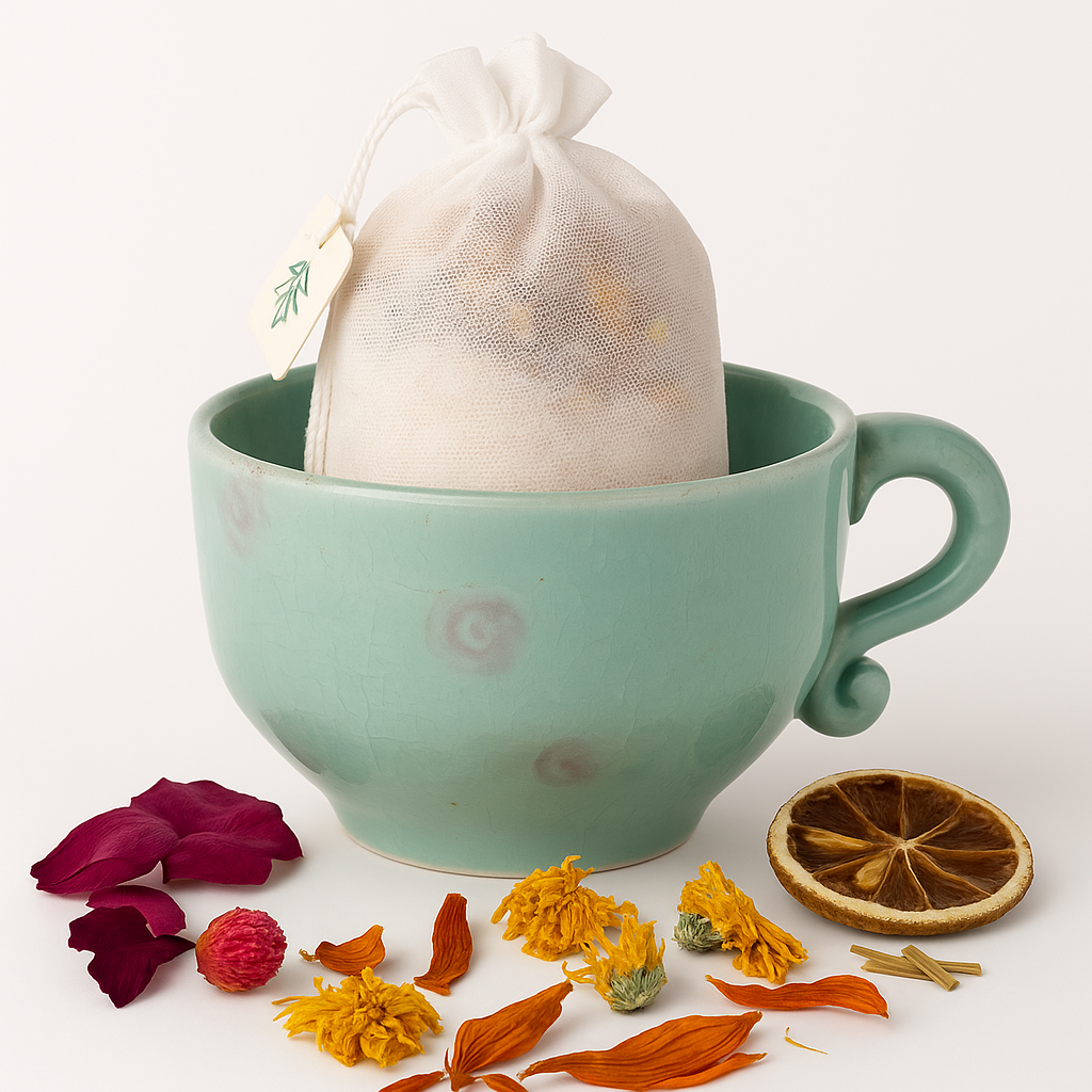 Unwind with our Garden Bath Steep — a dreamy tea bag packed with Epsom salt, calming colloidal oatmeal, and a lush mix of dried petals and herbs. As it steeps in your warm bath, the garden comes to life, releasing floral magic to soften your skin and ease your mind.
